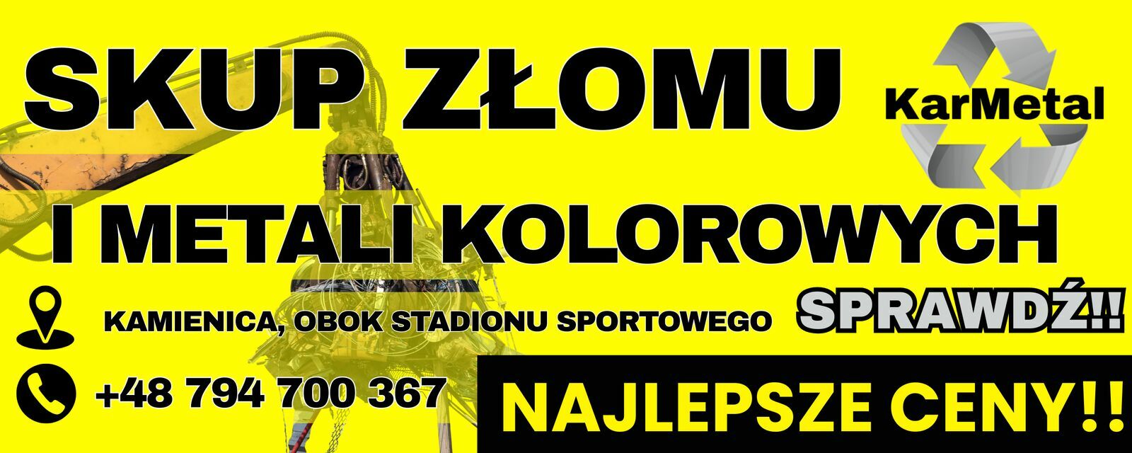 KarMetal – skup złomu metali kolorowych w Kamienicy, obok stadionu sportowego.Oferujemy najlepsze ceny złomu, miedzi, aluminium, katalizatorów i wielu innych. Płatność gotówką lub przelewem natychmiastowym. Skup złomu metali kolorowych Limanowa, Nowy Targ, Kamienica i okolice – nasza firma oferuje najwyższe ceny i najlepsze warunki współpracy. Jeżeli interesuje Cię skup miedzi, aluminium, mosiądzu, cynku, ołowiu, brązu, katalizatorów, czy stali nierdzewnej, to dobrze trafiłeś. Prowadzimy profesjonalny skup złomu metali kolorowych i obsługujemy klientów indywidualnych oraz firmy. Zapewniamy szybkie rozliczenia, płatność gotówką oraz najwyższe ceny.