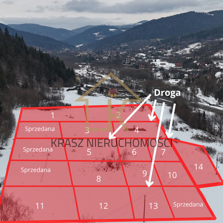 Całość obejmuje 14 działek położonych obok siebie tworzących